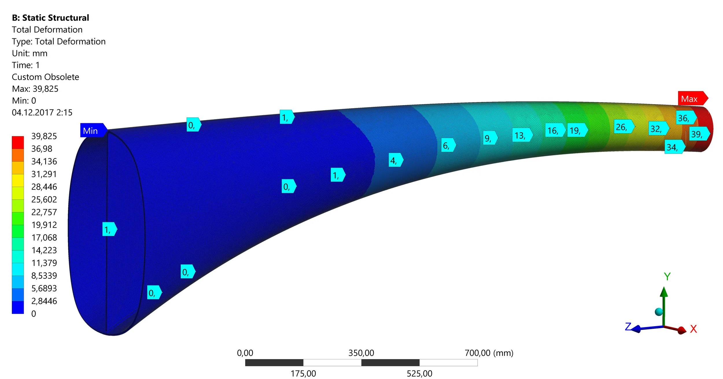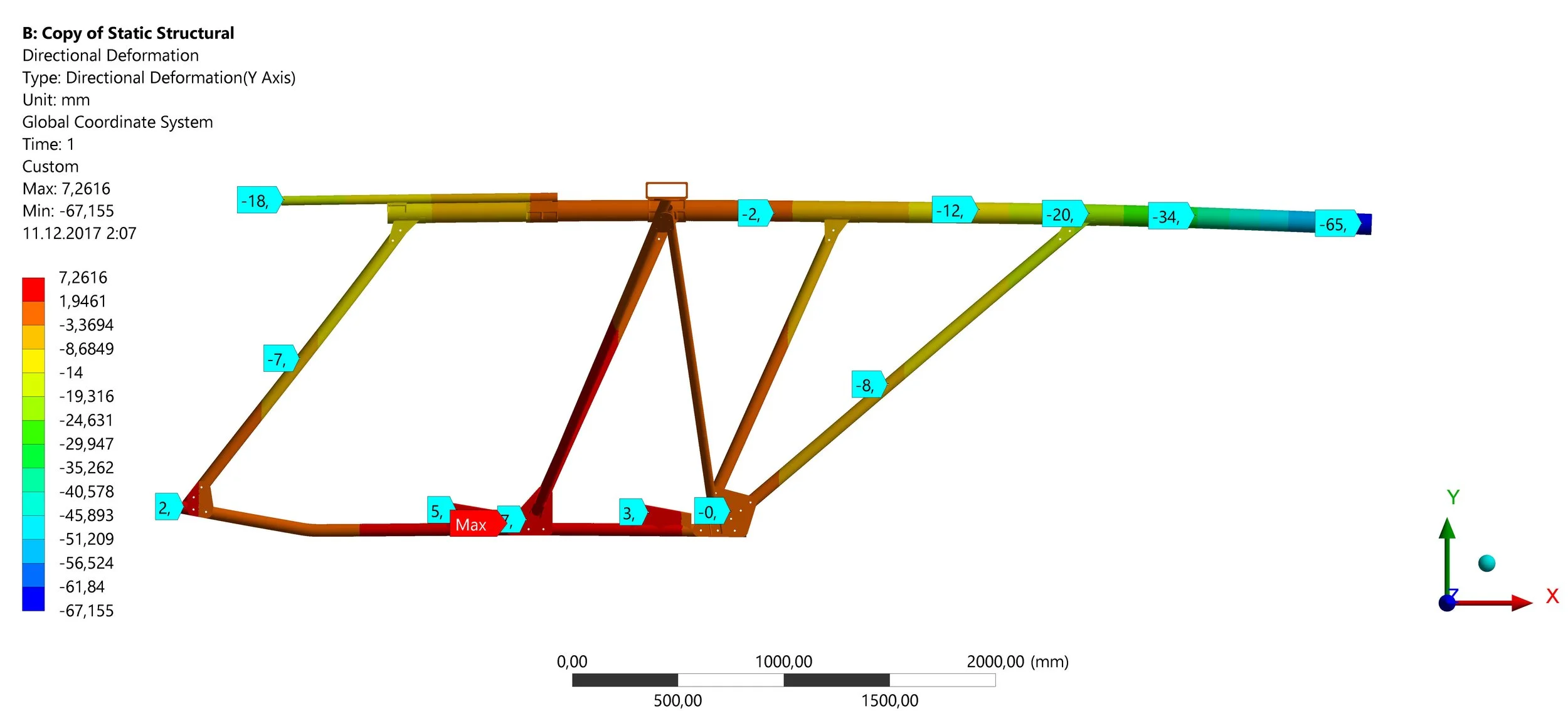 The analysis provided an understanding of the accelerations and loads acting on the airframe and showed problematic areas in the design. Using the analysis results, we created a weight-reduction plan (−8%) and increased the structural integrity of the joints with FoS that were below 1,3.